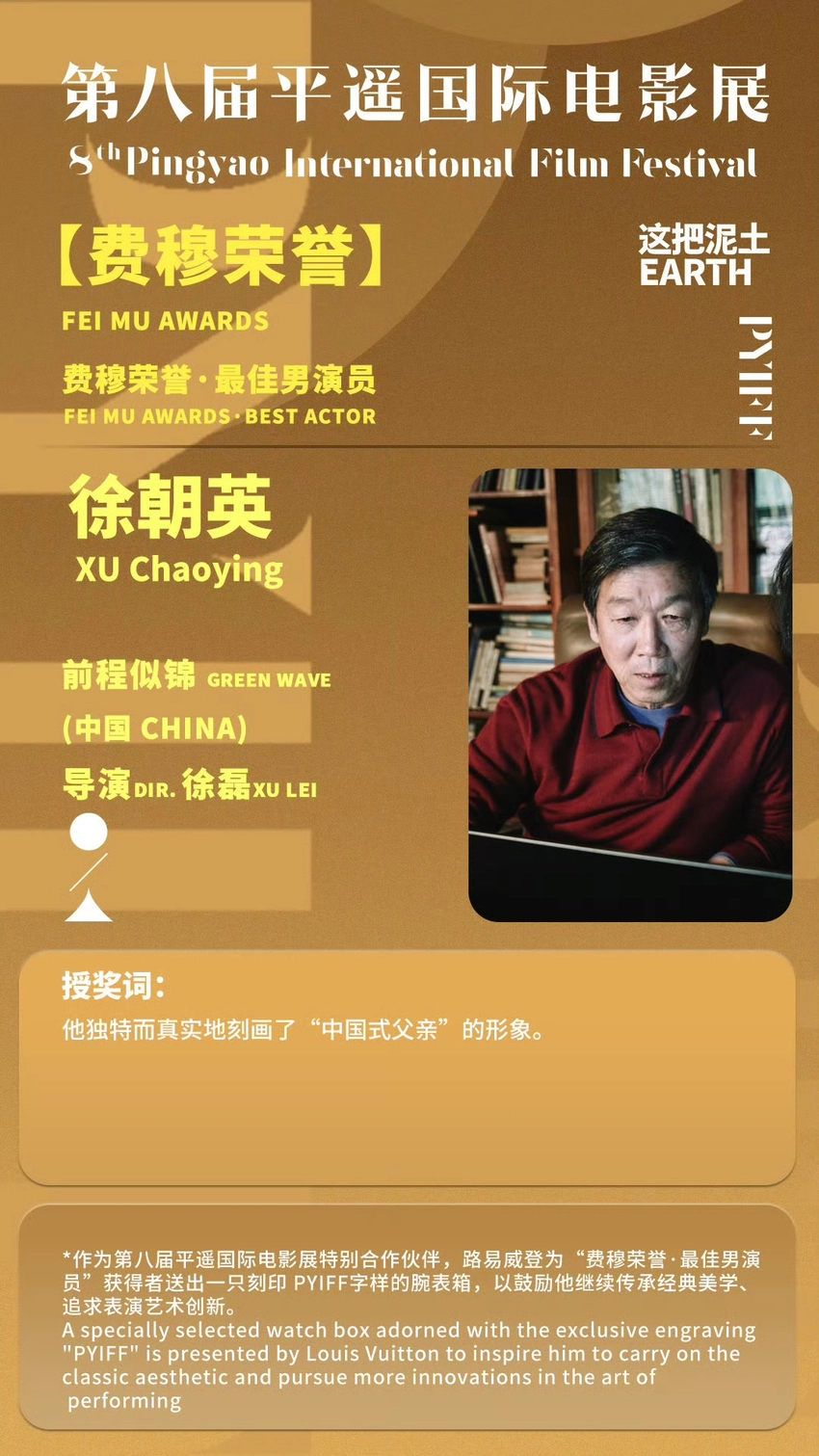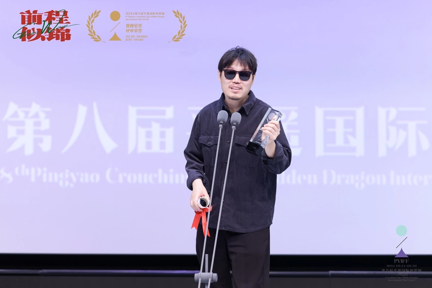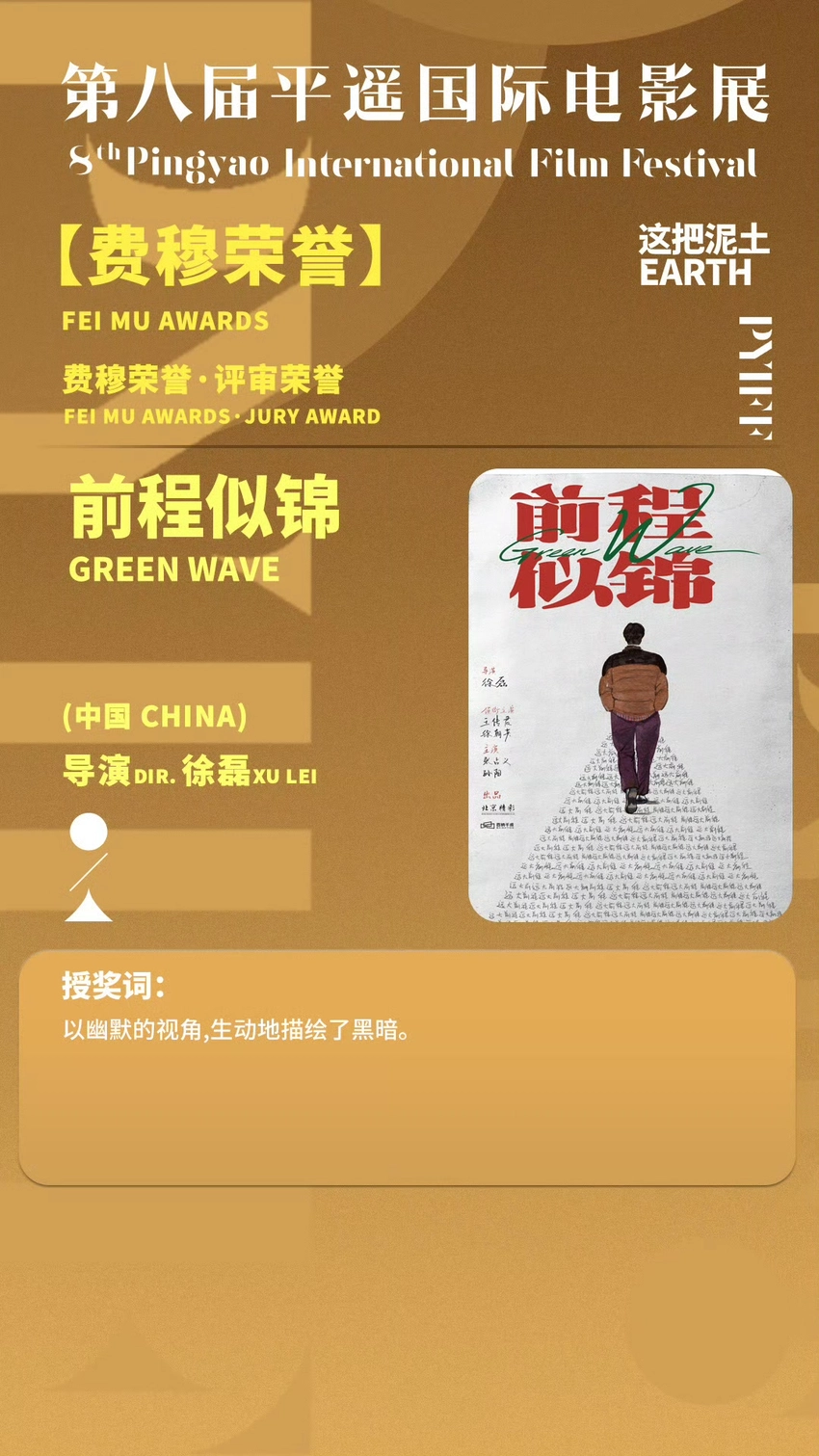 电影《前程似锦》是徐磊导演个人执导的第二部长片,入围了本次第8届平遥国际电影展“藏龙”单元。平遥期间,影片进行了全球首映,现场媒体及观众反响热烈、频频鼓掌爆笑,对影片表达了一致的认可,大赞影片为“年度惊喜之作”,在“延续了导演前作风格”的同时还“兼具幽默诙谐与人文关怀”,有了更加成熟的表达,令人感受到了“真实又鲜活”的生活气息。影片也因此以4.2的高分位列“藏龙”单元媒体场刊评分第一名,并最终不负众望,斩获了费穆荣誉·评审荣誉,领衔主演徐朝英也凭借片中父亲老卫一角夺得平遥“影帝”(费穆荣誉·最佳男演员)。有趣的是,颁奖当天徐磊、徐朝英这对现实生活中的“真父子”凭借《前程似锦》这样一部父子亲情主题的影片前后登台领奖时,主持人笑称“两个领奖的人长得有点像”,令全场嘉宾忍俊不禁,也称为了本届平遥的难忘瞬间之一。