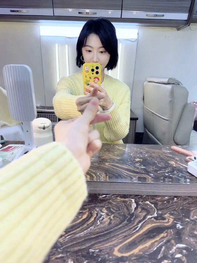景甜对镜自拍可爱比耶 短发搭配黄色针织温柔甜美 全文约48字, 阅读需要1分钟 近日,景甜在社交平台上上传了一组对精自拍Live照片。景甜身着鹅黄色针织衫,搭配卡通黄色手机壳对镜比耶,清爽甜美。 近日,景甜在社交平台上上传了一组对精自拍Live照片。景甜身着鹅黄色针织衫,搭配卡通黄色手机壳对镜比耶,清爽甜美。 相关人物
