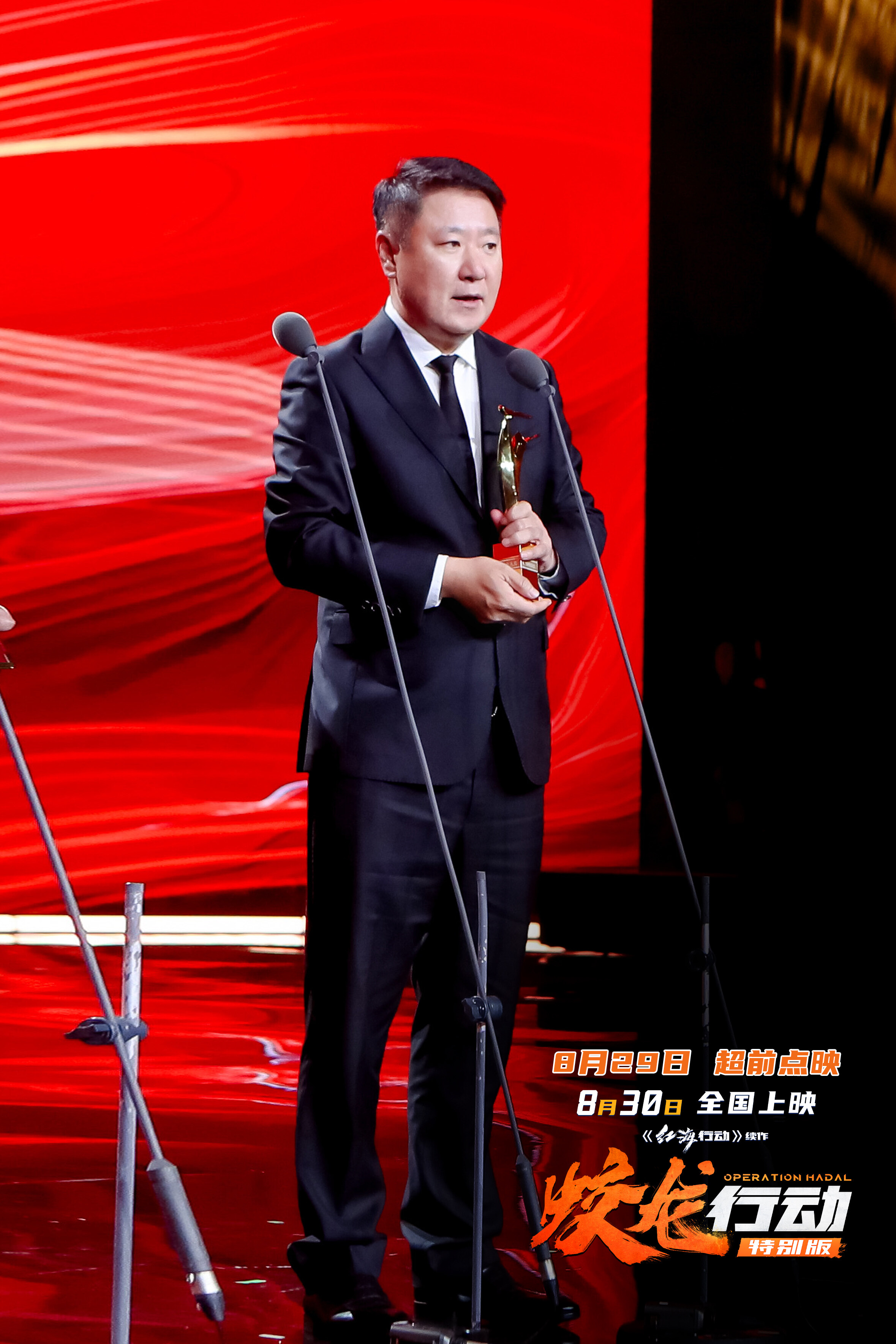 由博纳影业集团出品,林超贤执导的军事战争巨制《蛟龙行动》荣获第20届长春电影节“金鹿奖”评委会大奖。28日,影片《蛟龙行动(特别版)》贵阳路演,制片人、博纳影业集团行政总裁蒋德富,导演林超贤,演员杜江、蒋璐霞、高戈共同出席映后交流,中共贵州省委宣传部常务副部长谢念,中共贵州省委宣传部副部长、贵州省电影局局长曾祥坤,贵州广电网络传媒集团党委副书记、工会主席曹曦,中共贵阳市委宣传部常务副部长罗幸炳,中共贵阳市委宣传部副部长邓谦等领导亲临现场。影片凭借高帧率重制、更紧凑的叙事和更震撼的视听效果,重新定义“军事动作片标杆”。有观众激动表示:“这才是真正的大片体验,每一个镜头都值得二刷!”影片8月29日全国点映,8月30日正式登陆大银幕!
