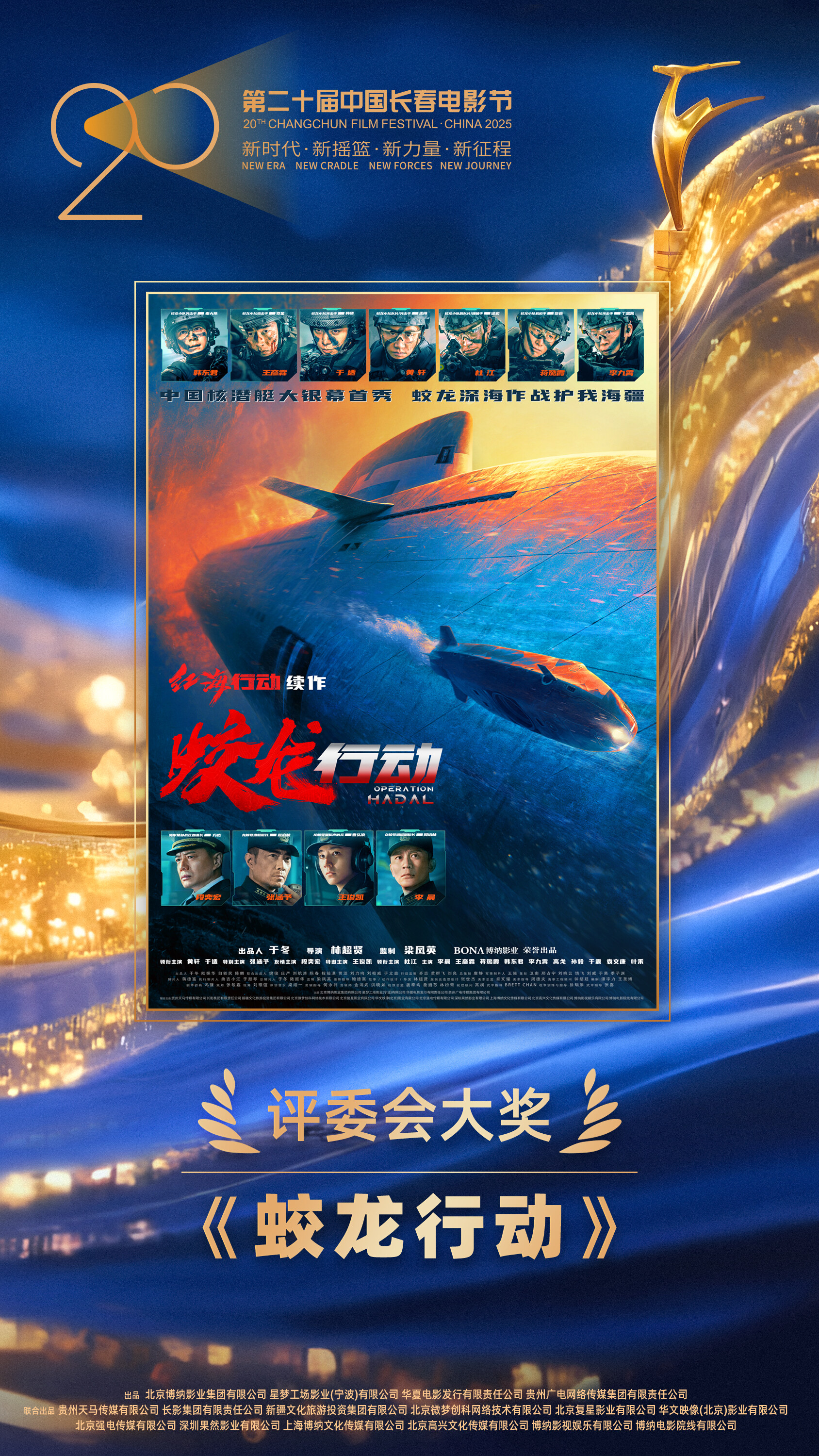 电影《蛟龙行动》荣获第20届长春电影节“金鹿奖”评委会大奖,这一荣誉是对主创团队匠心打磨的充分肯定。从《红海行动》到《蛟龙行动》,主创团队用8年时间续写“蛟龙精神”,拍摄过程中的每一份付出,都为这部深海巨制注入了真实的力量。出品人、总制片人、博纳影业集团董事长于冬表示:“博纳影业出品的《长津湖》《水门桥》都在长春电影节获得了最佳影片,感谢长春电影制片厂、长影集团对我们的支持,感谢所有台前幕后的工作人员。《蛟龙行动》这部电影拍得非常艰苦,也非常有新意。我们制作了特别版,来弥补在春节档期的遗憾,希望在抗战胜利80周年之际献上一份厚礼,致敬中国人民解放军海军,感谢广大观众再给这部电影一次机会。”