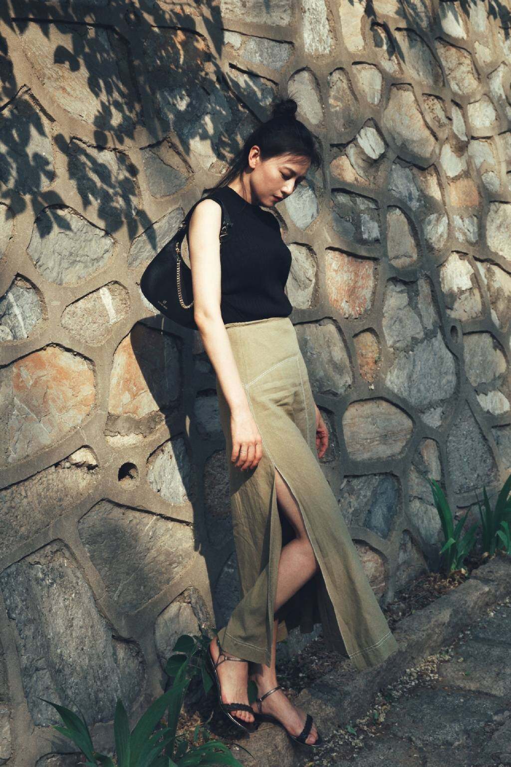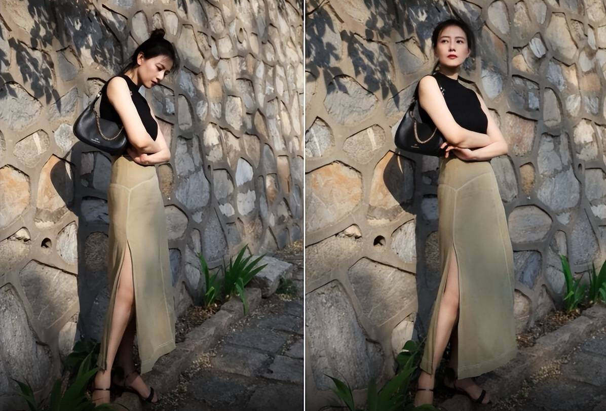 高圆圆树影大片气质佳 高开叉长裙秀纤细美腿