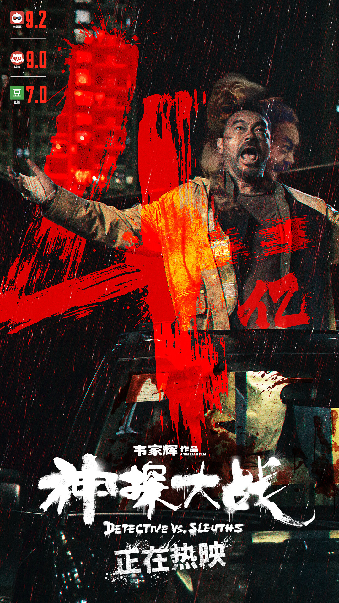 电影《神探大战》由英皇(北京)影视文化传媒有限公司、英皇影业有限公司、北京上狮文化传播有限公司出品,上海淘票票影视文化有限公司、华文映像(北京)影业有限公司联合出品,疯癫神探,极致追凶,全国热映中,体验生猛,刻不容缓!