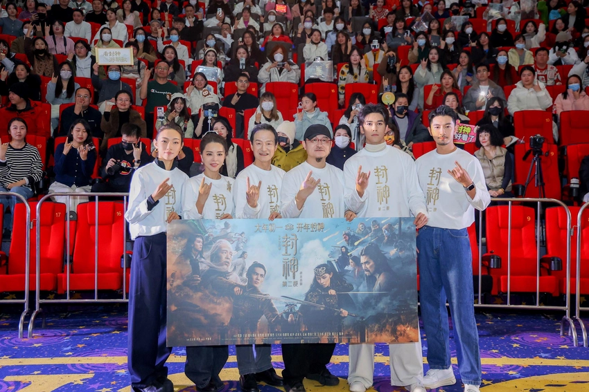 见面会现场气氛热烈,主创不仅分享了幕后拍摄趣事与创作心得,同时真诚地对于“荣誉出品人”表示了感谢,更在现场再现“远征北海还朝”“讨伐反贼苏护”等名场面,引发全场欢呼。不少观众表示“已经N刷了《封神第一部》,大年初一必看《封神第二部》”。现场还有观众了解《封神三部曲》的创作后赞道:“其中既能看到深厚的传统文化底蕴,也能感受到中国神话故事的无尽想象力,迫不及待想再去看我们自己的神话史诗大片。”