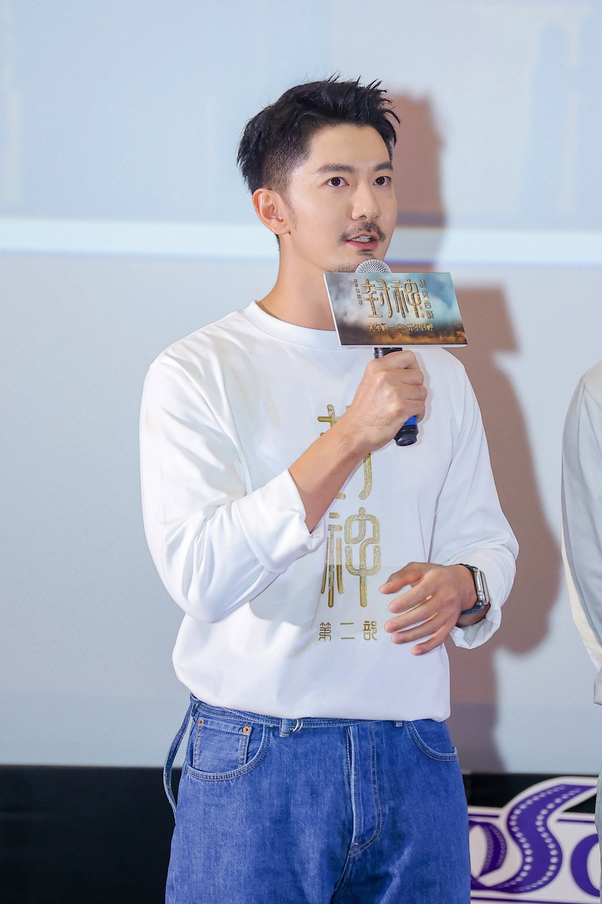 不仅邓婵玉可追溯到历史原型,殷商太师闻仲身上同样可见中国传统文化的意蕴。其饰演者戏剧大师吴兴国在现场演示了闻仲在片中的手诀,并介绍了背后的设计巧思。吴兴国自幼学习传统戏曲,此次在设计手诀时特意融入了戏曲中的动作与技巧,让闻仲一角具有威严之姿的同时,又有中国美学的气质。陈牧驰在片中饰演殷商太子殷郊,他在现场透露《封神第二部》中他将迎来阵营的转变,从昆仑“接头归来”的他将加入保卫西岐的一方,替自己与母后向殷寿复仇。他更是在现场霸气喊话一众“殷商将帅”:“你们最大的错误就是回到了朝歌。”短短一句,铿锵有力,令观众对这场强强对决更添期待。邓婵玉、闻仲、太鸾三个角色仅在《封神第一部》片尾彩蛋中出现,却备受观众期待,被亲切调侃为“彩蛋小分队”。其中太鸾的饰演者刘潮也为观众揭秘了《封神第二部》动作戏的幕后挑战。他分享道:“太鸾是邓婵玉副将,90%的戏份都在马上。进入‘封神演艺训练营’之前我是一个‘马术小白’,特别感谢那茜,她教了我很多。”对于这位“马术精湛的主帅”,他更是笑言“那尔那茜后脑勺都会骑马”。应观众热情呼声,那尔那茜、吴兴国、刘潮三人在现场重现了“远征北海还朝”的名场面,电影中威严肃穆的角色一跃走入观众身边,以全新的方式带来欢乐,令现场气氛更加热烈。