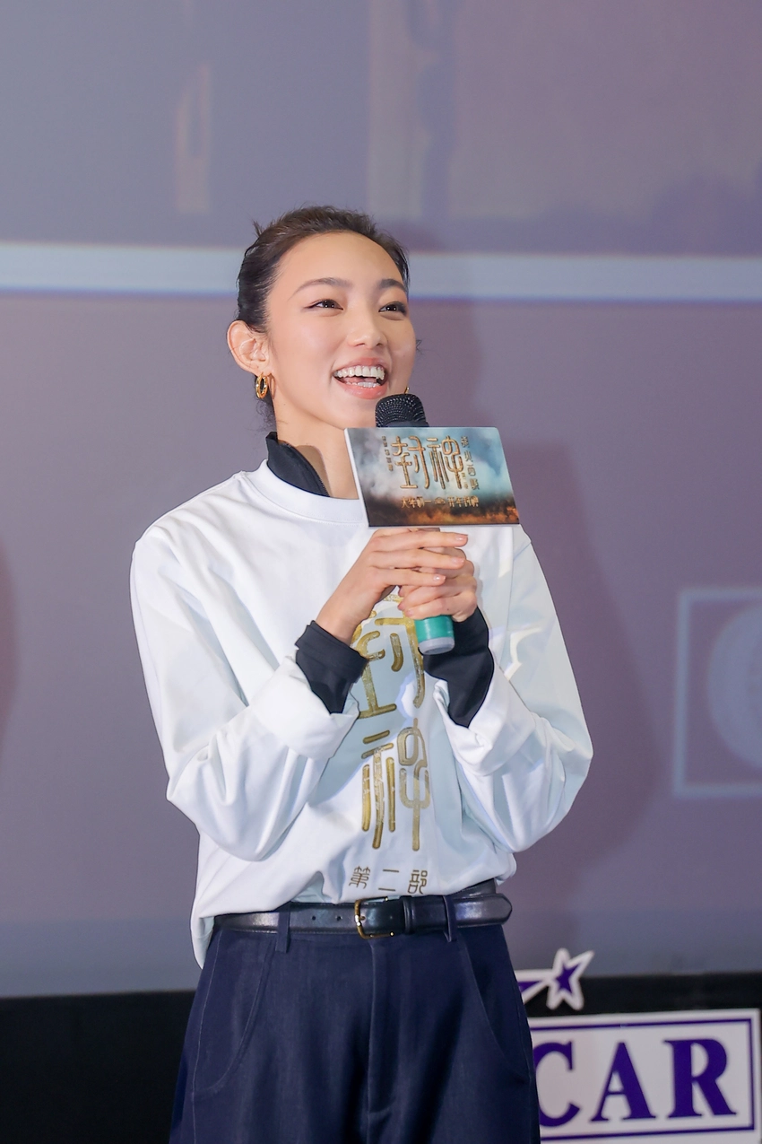 活动现场,殷商阵营各大“强将”也悉数亮相。《封神第一部》上映时,邓婵玉在彩蛋中惊艳亮相,寥寥几幕已然流露出其独特的人物魅力。导演乌尔善在现场介绍道:“邓婵玉这个角色的灵感来源之一就是妇好。”身为商王武丁的王后,妇好曾多次受命征战沙场,英勇善战可谓巾帼不让须眉,这恰是导演乌尔善想象中邓婵玉的特质。为此,剧组也曾亲赴河南妇好墓采风,从历史中汲取灵感。饰演邓婵玉的那尔那茜表示:“历史给予我的是一种力量、一种鼓舞,也是一种激励,激励我把邓婵玉这个角色的精彩带给大家。”为了诠释好这位英姿飒爽的殷商大军先锋官,那尔那茜在“封神演艺训练营”中进行了为期六个月的表演、格斗、马术、潜水等全方位训练。据陈牧驰介绍,在训练营中,那尔那茜的训练强度和要求与“质子”们是一样的。从开始训练到正式拍摄第一场戏,那尔那茜付出了长达506天的等待与努力,通过了四次汇演考核,最终赢得了邓婵玉这个角色。对此,那尔那茜表示:“等待的过程都是体验这个角色成长的过程,我非常享受其中。”现场,那尔那茜也向观众大秀习得的“武艺”,一展迅猛凌厉的通臂拳。