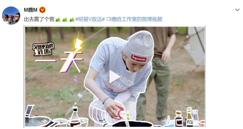 鹿晗分享春日露营vlog 与好友相谈高中趣事轻松惬意 全文约56字, 阅读需要1分钟 5月23日,鹿晗分享春日露营视频。他与好友一起齐心搭帐篷,品尝咖啡,谈天说地悠然自得的感受着自然,燃起篝火,再制作一些美食,轻松惬意。 5月23日,鹿晗分享春日露营视频。他与好友一起齐心搭帐篷,品尝咖啡,谈天说地悠然自得的感受着自然,燃起篝火,再制作一些美食,轻松惬意。 相关人物