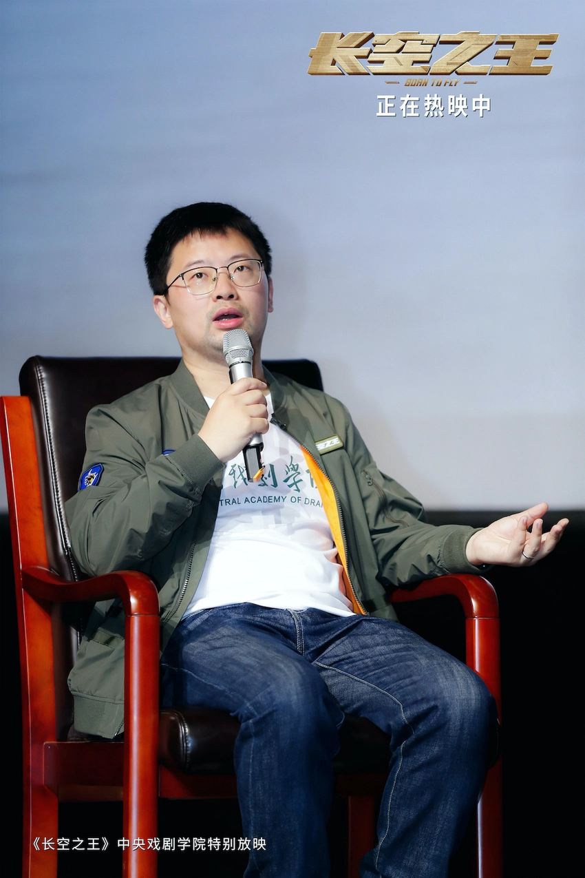 在影片团队中,有不少主创都毕业于中央戏剧学院,这次他们带着作品《长空之王》回到母校,与中戏的同学们分享了满满干货。编剧桂冠便是中戏第一届编导专业的学生,她分享了塑造人物形象的经验,自己不光要将军人“有灵魂、有本事、有血性、有品德”的形象立住,还要去考虑如何让他们更加有血有肉,使人物丰满。现场同学们分享感受时不止一次提到,影片人物是“可信的,真实的,而且有亲和力”。演员胡军作为中戏的第一届表演班班长,高兴地说“今天自己来交作业”。他在现场解答了学生们对虚拟拍摄的好奇,分享到剧组做出了能360度旋转的坐舱段,并且背后LED屏上的天空也会随之变化。导演和试飞员从旁指导,连飞行的幅度都要把握得尽量精准。同样毕业于中戏的潘斌龙也直言,自己坐在其中收获了如同真实开飞机般的体验。制片人张冠仁在回顾剧组四年来的筹备与拍摄时,十分感慨地用一句影片台词概括了这段经历,遇到困难“坚持,再坚持一下”。