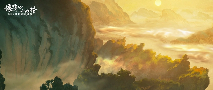 从全新预告所展现出的美术风格来看,团队创造性将中国传统绘画的笔墨意境、写意审美,与电影镜头的光影、空间、真实感完美融合,让故事在兼具东方美学意蕴与现代影像表现力的独特视觉语言中展开。预告揭开了离开浪浪山后更广阔的画卷——泼墨山峦与工笔线描勾勒出四只小妖西行路上的宏大场景,他们在路途中的夕阳、草丛、流水由层层墨色晕染开来,描绘出霞光满天、溪水潺潺的唯美景象;写意留白、光影交错间,又营造出神秘与未知的氛围,暗示其中深藏妖界迷雾;打斗场面化用武术招式的写意韵律。配乐上,以中国传统乐器的独特音色为基底,为观众带来一场既极具民族韵味又充满现代活力的“国风”视听盛宴。