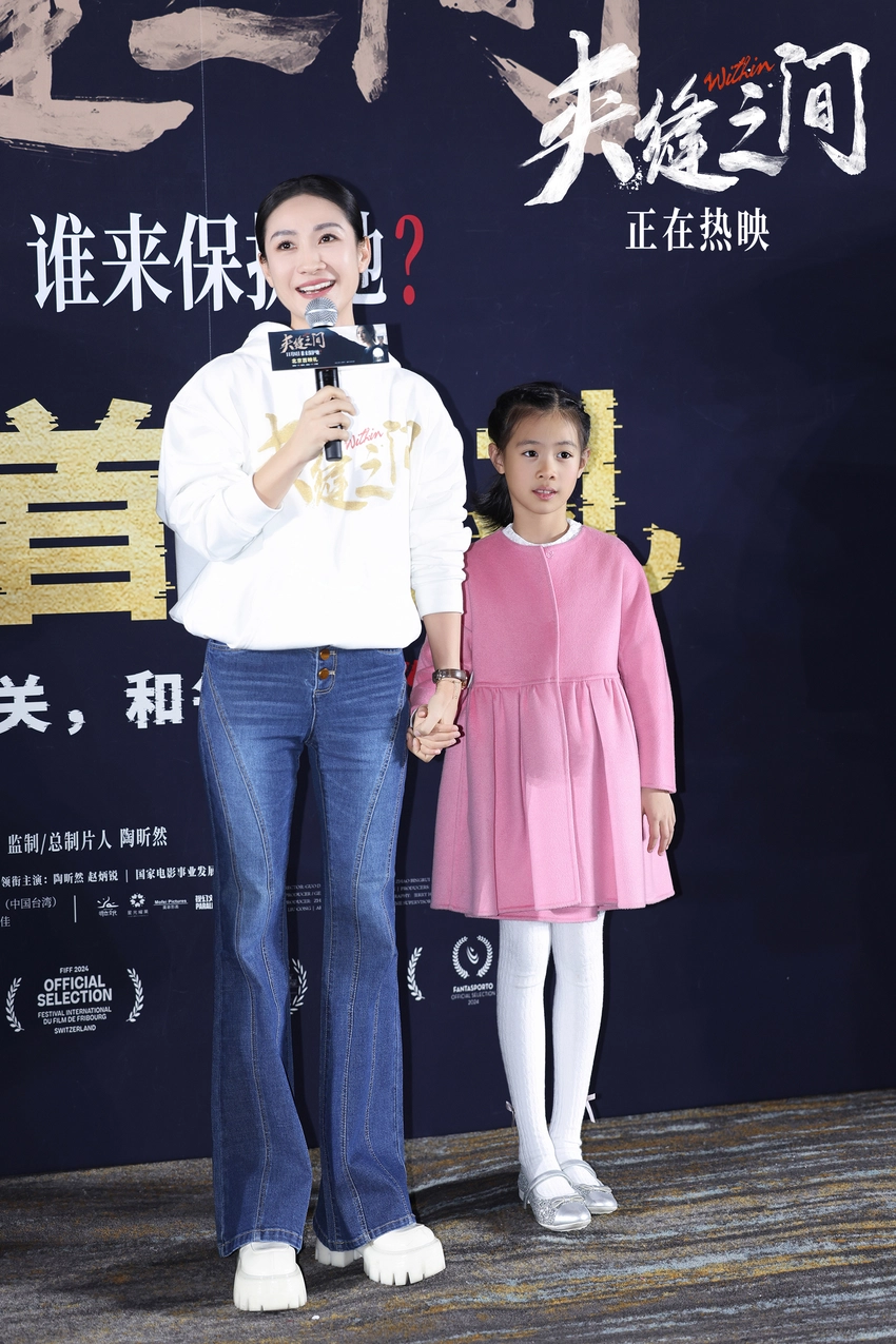 11月7日,电影《夹缝之间》举办北京首映礼,编剧、导演郭大路,携监制、总制片人、领衔主演陶昕然,以及领衔主演赵炳锐亮相首映礼映后见面会,与到场嘉宾及现场观众分享观影感受、揭秘幕后故事,陶昕然与女儿还在首映礼现场首度合唱《马马嘟嘟骑》。