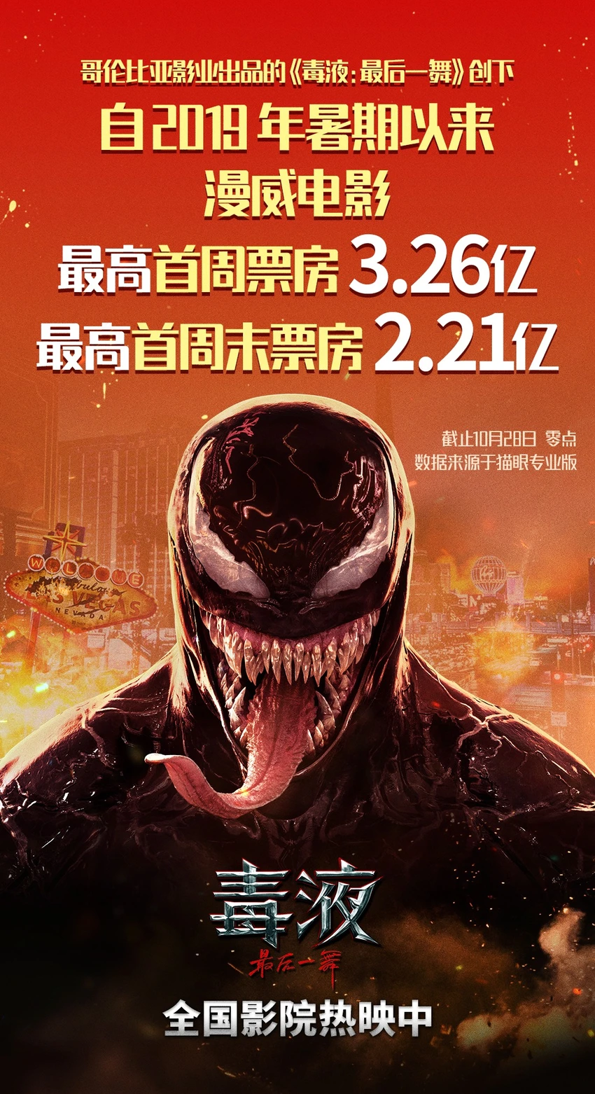 由美国哥伦比亚影片公司出品,漫威影业联合出品的超级IP“毒液”系列最终章——《毒液:最后一舞》正在全国影院热映中。继昨天影片发布毒液马精彩变身后,今日又再度加码,释出中国独家毒液家族“五...