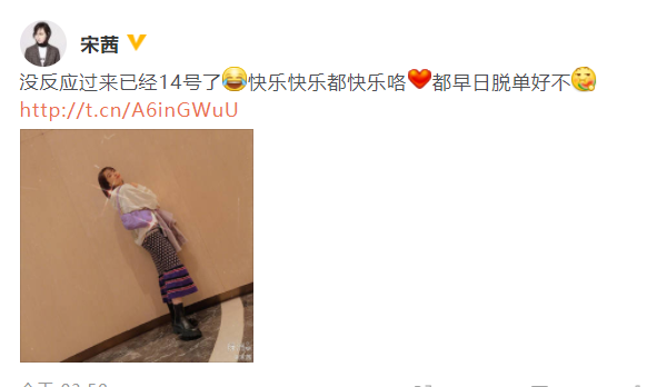 宋茜晒近照送粉丝情人节祝福:都早日脱单好不?