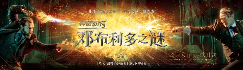华纳兄弟影片公司出品、《哈利·波特》作者J.K.罗琳所创作的“魔法世界”全新冒险篇章《神奇动物:邓布利多之谜》今日曝光中国独家预告及“世纪对决”版海报。海量新镜头震撼曝光,隐藏秘密逐渐浮出水面。当魔法世界一直以来维护的和平将要走向毁灭,格林德沃暗自滋生的野心逐渐膨胀,邓布利多组建的团队能否及时阻止这场阴谋?当史上两个最强巫师展开对决,谁将更胜一筹?4月8日,走进影院见证魔法世界的传奇之战!
