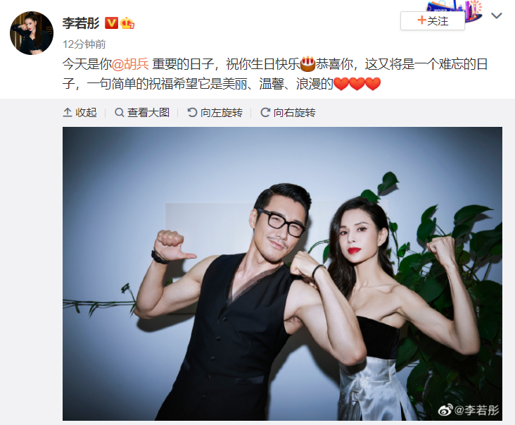 李若彤晒合照为胡兵庆生 二人秀肌肉线条冻龄神颜超绝 全文约59字, 阅读需要1分钟 2月14日是胡兵生日,好友李若彤晒出合照为其庆生:“今天是你重要的日子,祝你生日快乐!”照片中二人冻龄神颜超绝,对镜秀肌肉线条,身材保养超好。 2月14日是胡兵生日,好友李若彤晒出合照为其庆生:“今天是你重要的日子,祝你生日快乐!”照片中二人冻龄神颜超绝,对镜秀肌肉线条,身材保养超好。 相关人物
