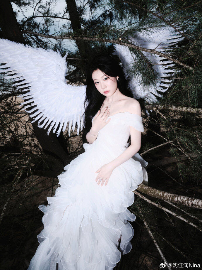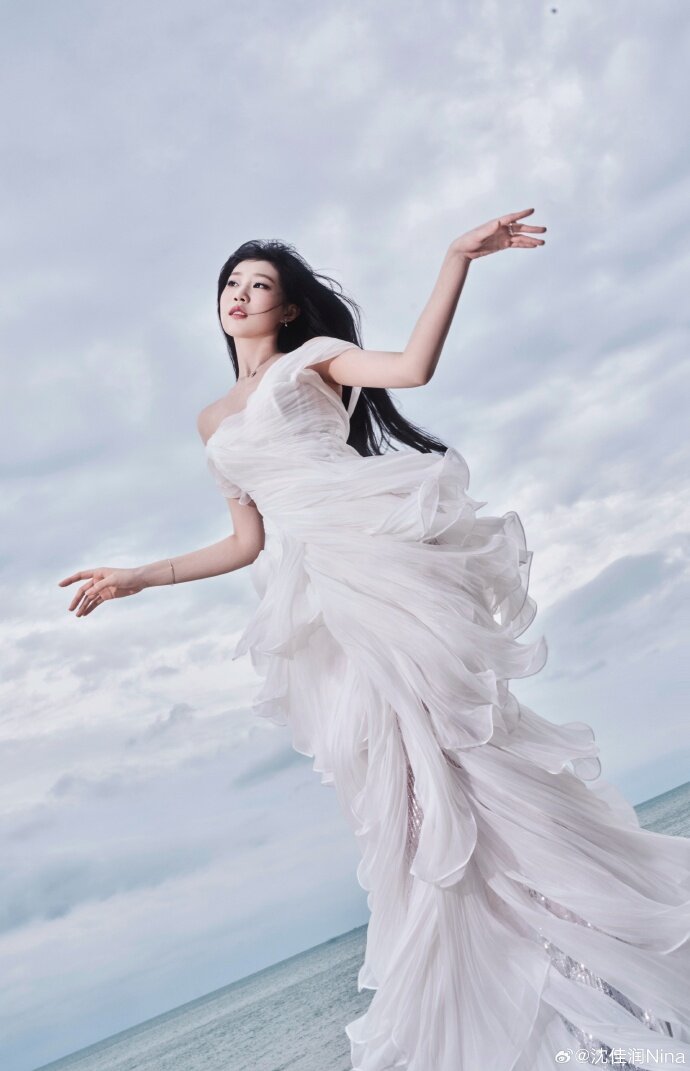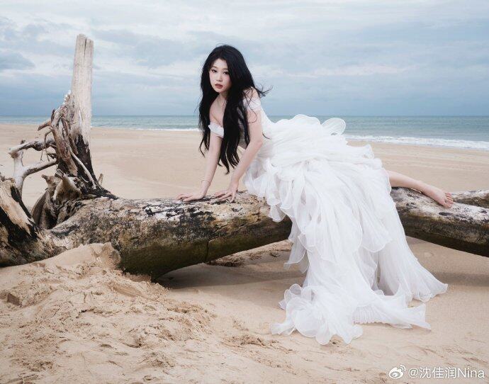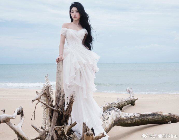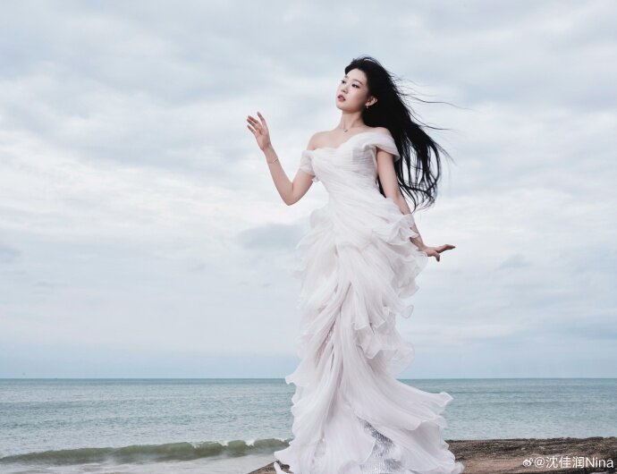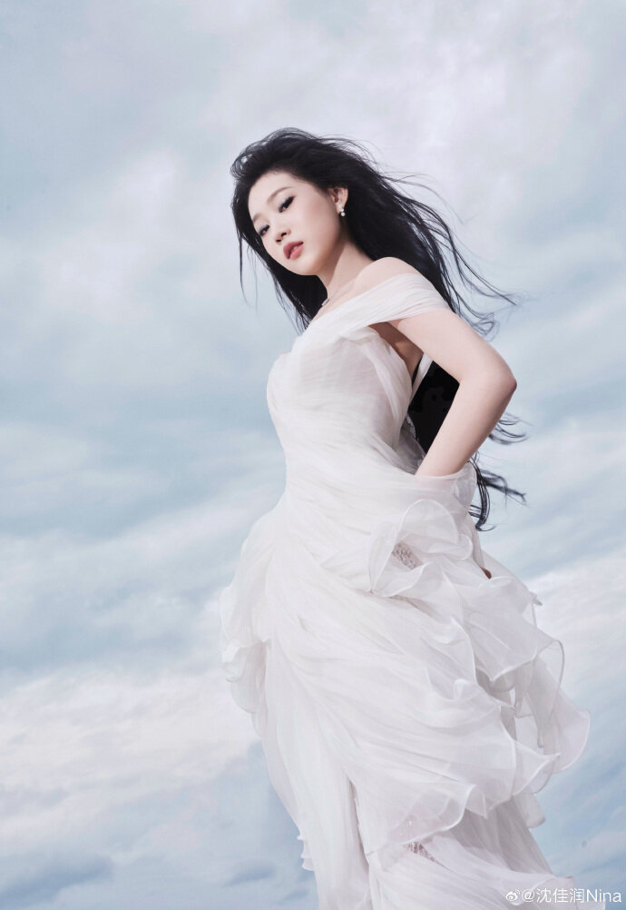 昨日,小沈阳女儿沈佳润晒一组照片。图中,她穿着白色露肩装,发丝随风飘动,清冷优雅。