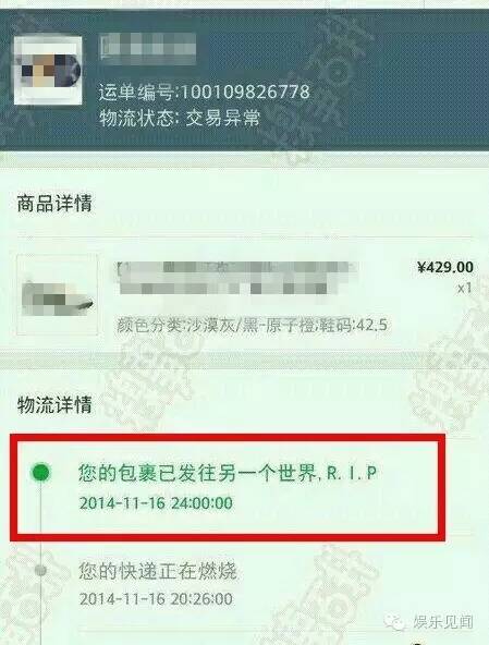 看到网友们的脑洞回复,闻君是大大地服气。说到快递回复,不知道大家有没有收到过奇葩的消息呢?没收到不要紧,闻君搜罗了一些,供大家吃过饭后笑纳: