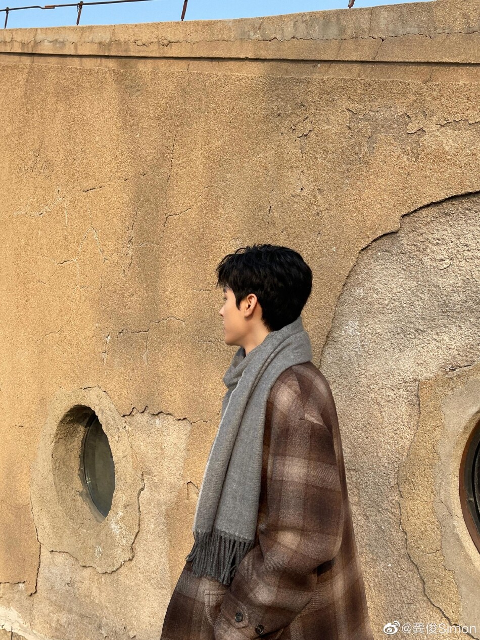 2月25日,龚俊分享随手三连拍,他身穿棕色格纹大衣,搭配灰色围巾,韩剧男主既视感!