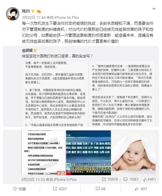 朵朵妈妈佟丽娅也坐不住了刚刚陪孩子打完三次疫苗的导演陆川,对于“疫苗造假”事件做出了深刻的评论