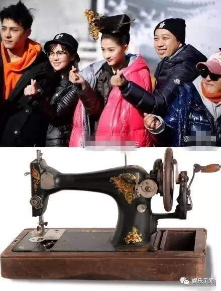 还发挥想象力说是顶着一台老式缝纫机