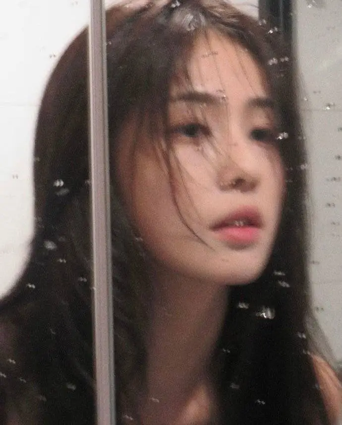 白鹿晒浴室湿发照纯欲十足 穿黑色吊带性感随性