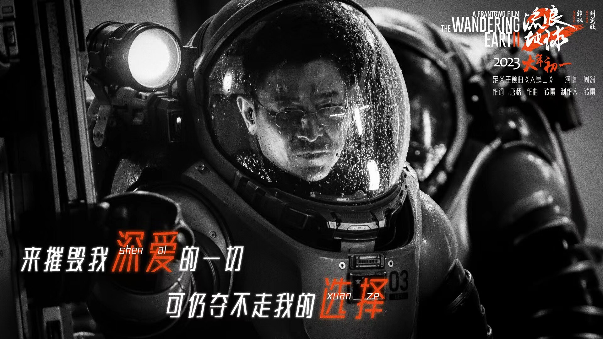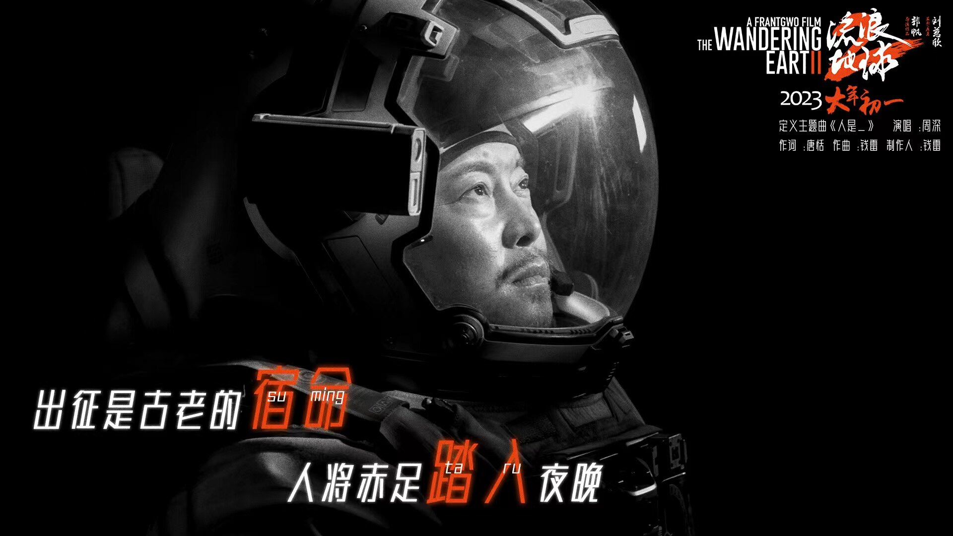 1月14日,中国科幻电影《流浪地球2》发布由华语乐坛黄金组合唐恬作词、钱雷作曲,实力唱将周深演唱的定义主题曲《人是_》。