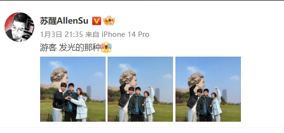 陆虎与女友游玩合影 苏醒站两人中间变最强电灯泡 全文约48字, 阅读需要1分钟 久之娱乐讯 1月3日晚,苏醒在社交平台上晒出与陆虎和陆虎女友一起游玩的合照,苏醒站在两人中间,秒变最强电灯泡! 久之娱乐讯 1月3日晚,苏醒在社交平台上晒出与陆虎和陆虎女友一起游玩的合照,苏醒站在两人中间,秒变最强电灯泡! 相关人物