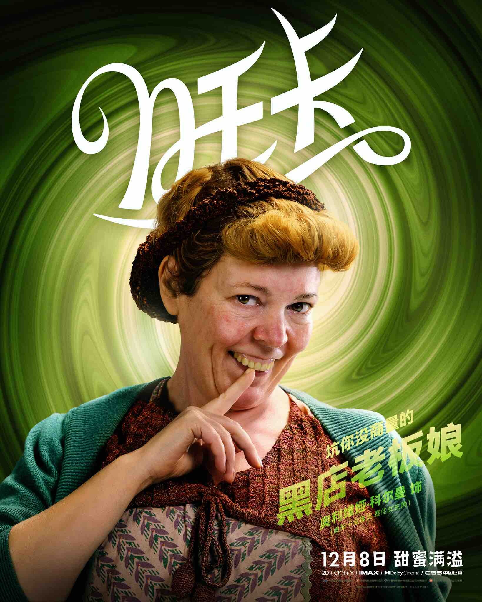 今日發佈的角色海報中,“反派天團”十分吸睛。奧斯卡影后奧利維婭·科爾曼顛覆出演口蜜腹劍、坑你沒商量的黑店老闆娘。在她的哄騙下,身無分文的旺卡入住旅店,卻一不小心欠下鉅額債務。此外,真正給旺卡“當頭棒喝”的非“巧克力黑幫”三人組莫屬。高傲又自以為是的斯拉沃斯、精緻考究看不起窮人的菲克魯伯以及矮胖愚蠢的普諾德斯狼狽為奸,統治了當地的巧克力市場。旺卡的出現,讓他們感到空前的危機。他們用巧克力賄賂警察局長和朱利葉斯神父,使出渾身解數想要趕走旺卡。值得一提的是,朱利葉斯神父由知名喜劇演員“憨豆先生”羅温·艾金森飾演,此次出演痴迷巧克力無法自拔的神父,可謂笑點滿滿。他又將和“甜茶”擦出怎樣奇妙的化學反應?12月8日,大銀幕揭秘!