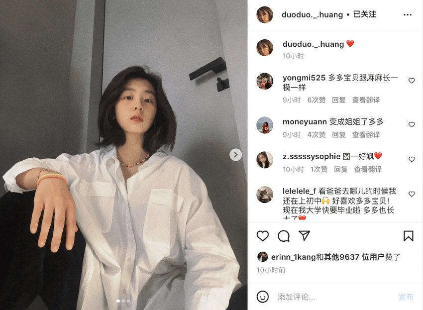 黃磊16歲女兒多多曬自拍 穿白色大碼襯衣御姐範兒足