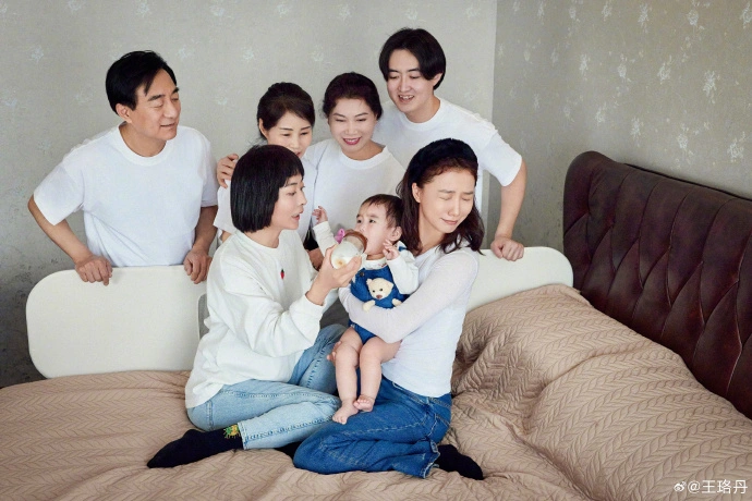近日,王珞丹與爸爸媽媽和姐姐的合照釋出。