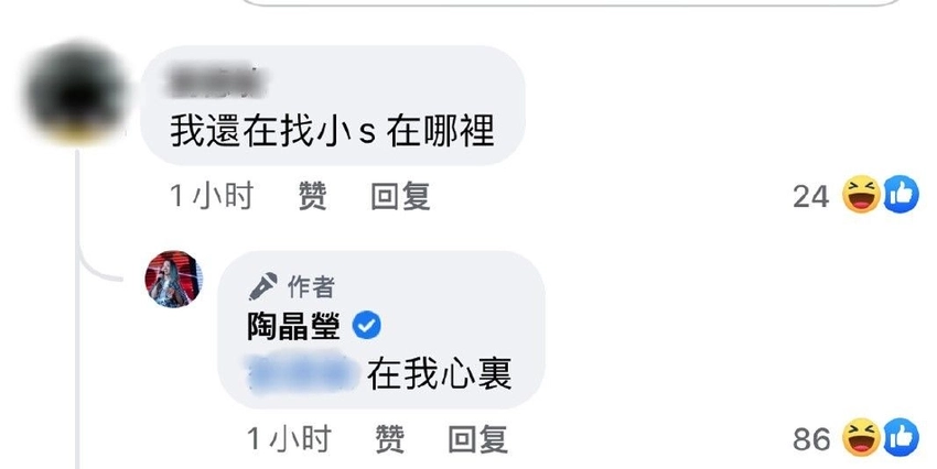 陶晶瑩曬"怪奇少婦"合照 林依晨徐佳瑩等對鏡微笑好歡樂 全文约84字, 阅读需要1分钟 久之娛樂訊 11月10日,陶晶瑩在個人社交平台分享了一張“怪奇少婦們”的大合影,合照上有陶晶瑩、徐佳瑩、魏如萱、蘇慧倫、許哲珮以及林依晨,大家滿臉笑容,膚白貌美。 久之娛樂訊 11月10日,陶晶瑩在個人社交平台分享了一張“怪奇少婦們”的大合影,合照上有陶晶瑩、徐佳瑩、魏如萱、蘇慧倫、許哲珮以及林依晨,大家滿臉笑容,膚白貌美。有網友問道:“小S在哪裏?”陶晶瑩回覆道:“在我心裏。” 相關人物