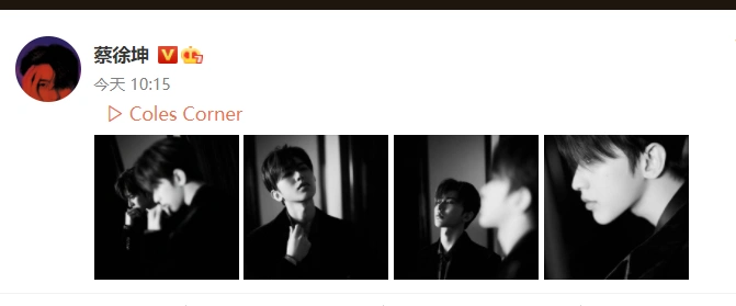 蔡徐坤黑白側顏殺鏡面寫真 暗黑禁慾氛圍感滿滿 全文约44字, 阅读需要1分钟 10月9日,蔡徐坤發佈一組黑白鏡面寫真,深色襯衣搭配黑色絨質外套,手指輕抵在嘴唇,將暗黑禁慾氛圍感拉滿。 10月9日,蔡徐坤發佈一組黑白鏡面寫真,深色襯衣搭配黑色絨質外套,手指輕抵在嘴唇,將暗黑禁慾氛圍感拉滿。 相關人物