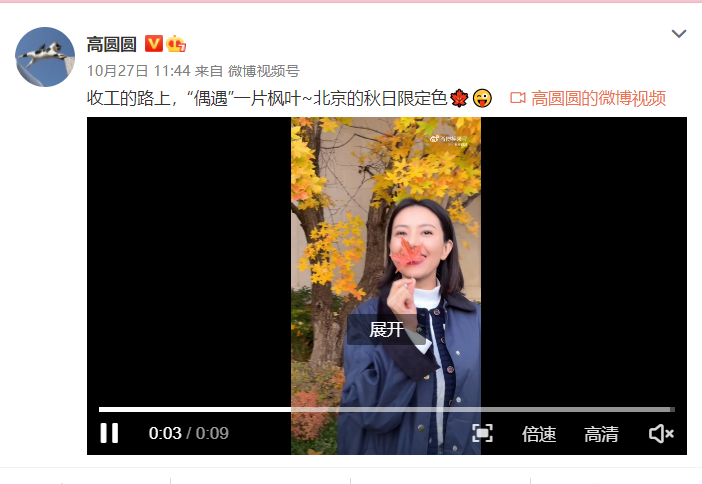 高圓圓手拿楓葉對鏡甜笑 藍色外套搭披肩發盡顯温柔氣質 全文约63字, 阅读需要1分钟 久之娛樂訊 27日高圓圓分享視頻,寫道“收工的路上,“偶遇”一片楓葉~北京的秋日限定色”,視頻中她身穿藍色外套搭配披肩發,手拿楓葉對鏡甜笑,盡顯温柔氣質。 久之娛樂訊 27日高圓圓分享視頻,寫道“收工的路上,“偶遇”一片楓葉~北京的秋日限定色”,視頻中她身穿藍色外套搭配披肩發,手拿楓葉對鏡甜笑,盡顯温柔氣質。 相關人物