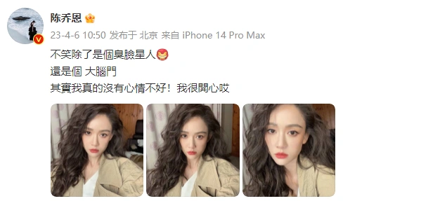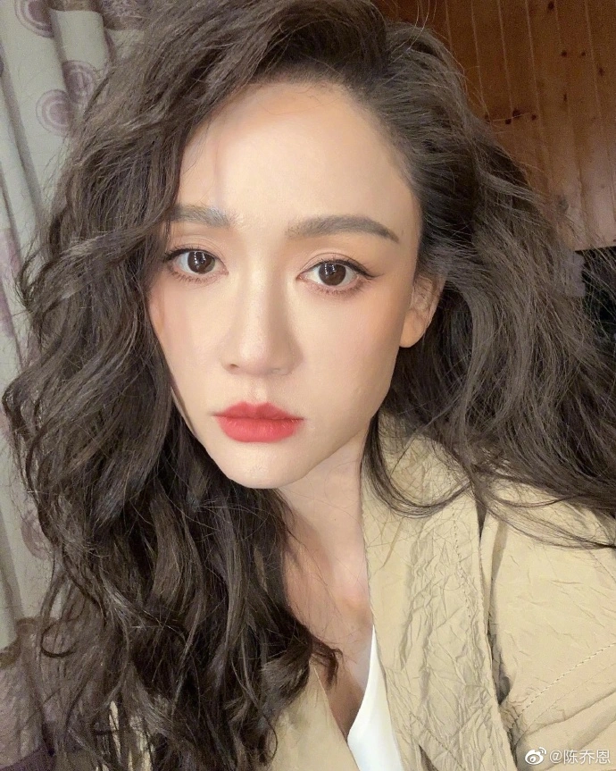 陳喬恩曬自拍高冷有範 港式大波浪飄逸妝容精緻動人