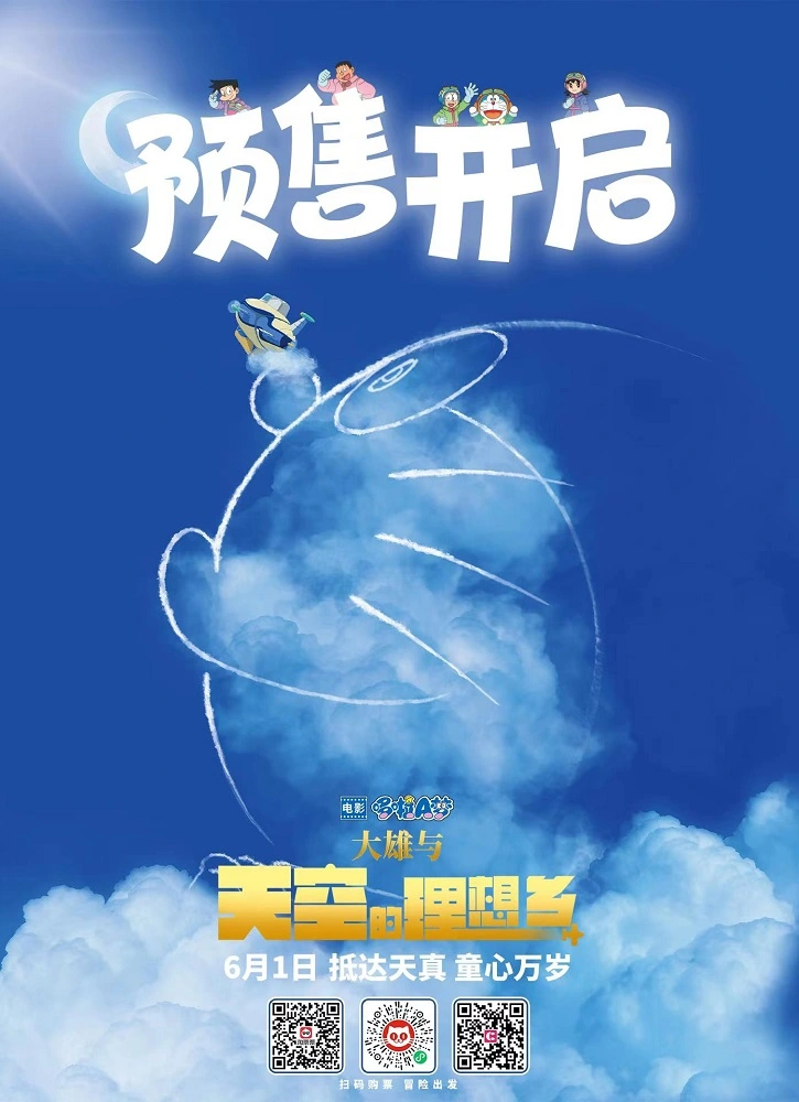 動畫電影《哆啦A夢:大雄與天空的理想鄉》由日本SHIN-EI動畫株式會社出品,中國電影集團公司進口,中國電影股份有限公司發行、譯製,將於6月1日全國上映,影片現已開啓預售,敬請期待。