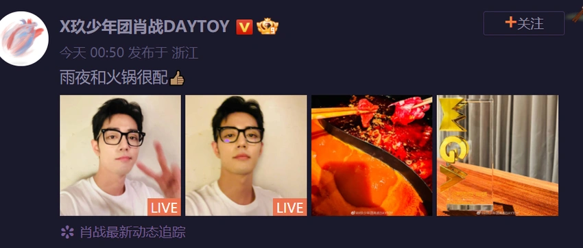 久之娛樂訊 29日,肖戰曬吃火鍋是的自拍,“雨夜和火鍋很配”。