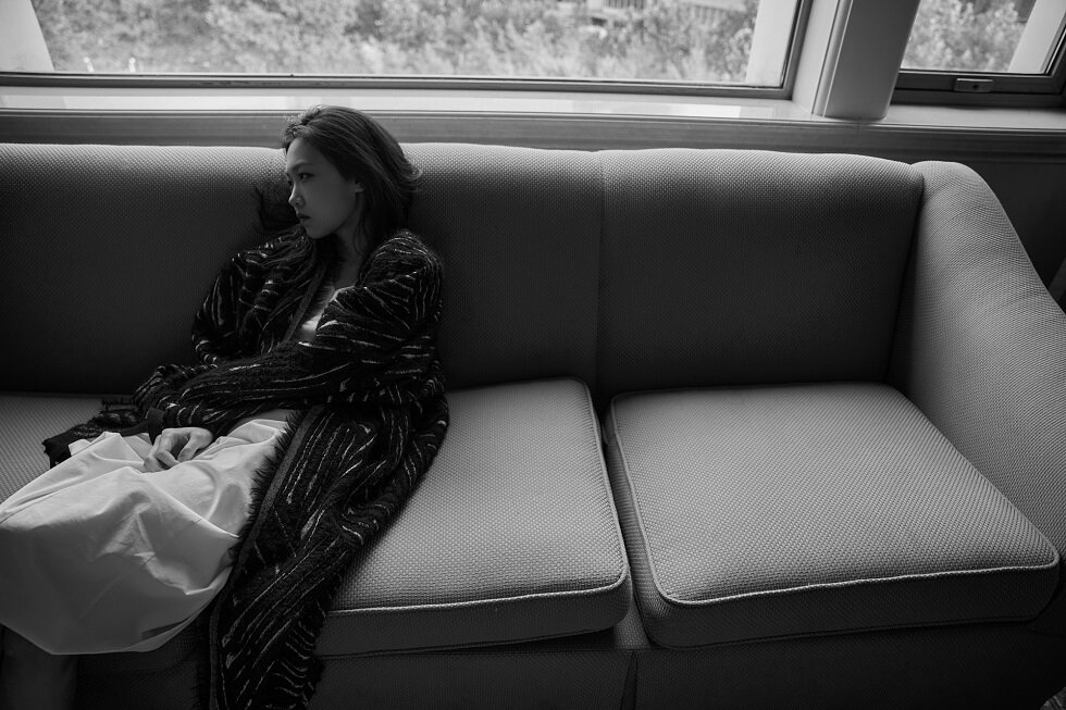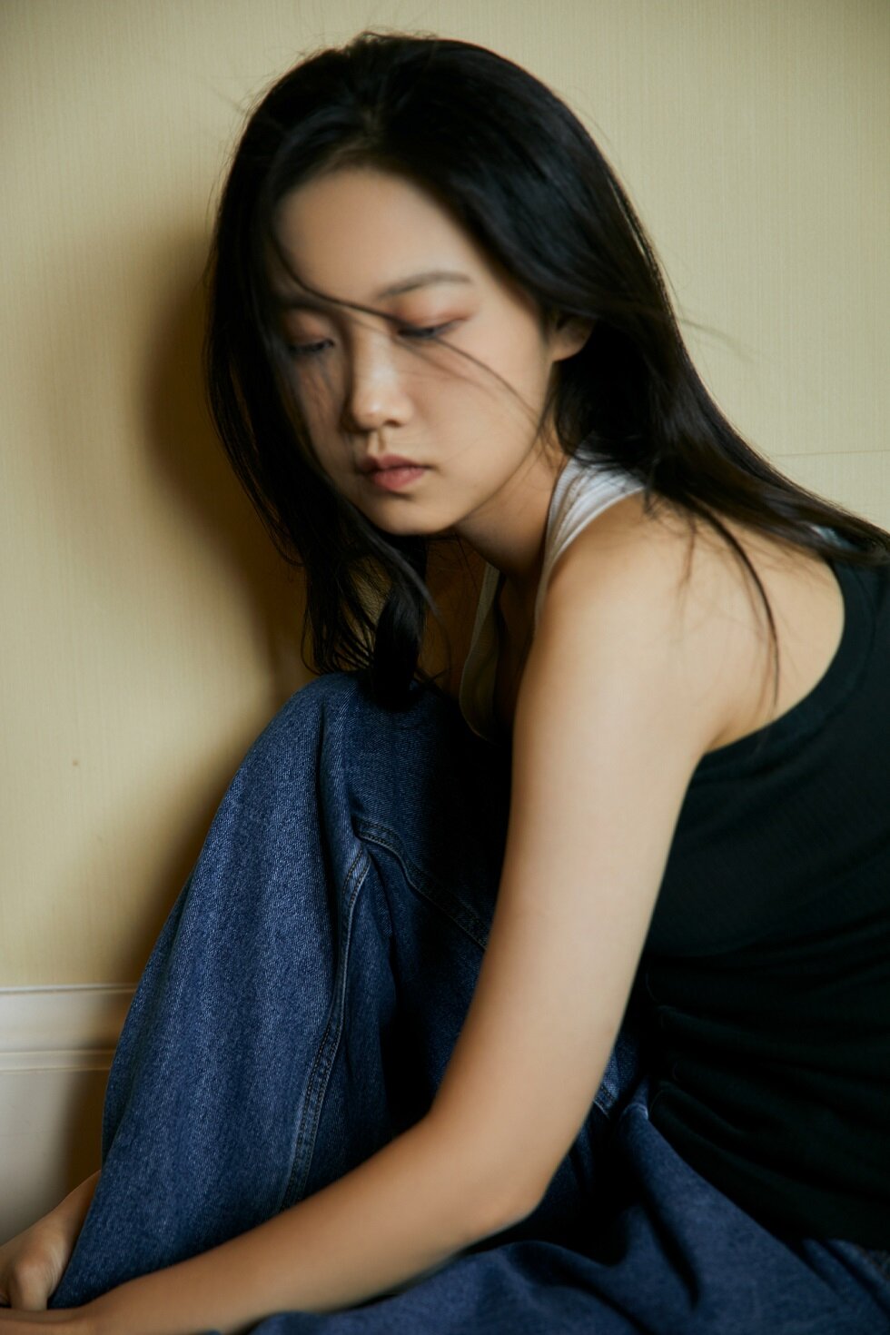 陳宣宇身穿棕色背心搭配寬鬆藍色牛仔褲,自然舒服的坐在沙發上,髮絲隨着微風搖曳晃動,每一張照片都盡顯悠閒愜意。第二套陳宣宇穿着白色吊帶裙,倚坐着透明玻璃窗邊,綠蔭環繞,整個畫面充滿氤氲神秘的氣息。另外,陳宣宇身穿風衣在樹林裏穿梭行走的圖片,眼神深邃堅定,盡顯滿滿的故事感。