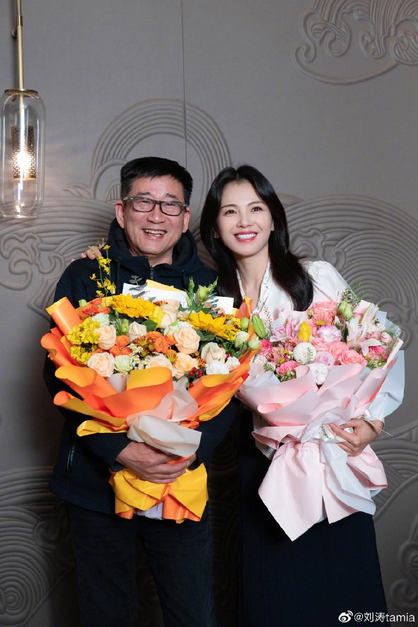 劉濤曬新劇殺青照 手捧鮮花與秦海璐劉宇寧等合影