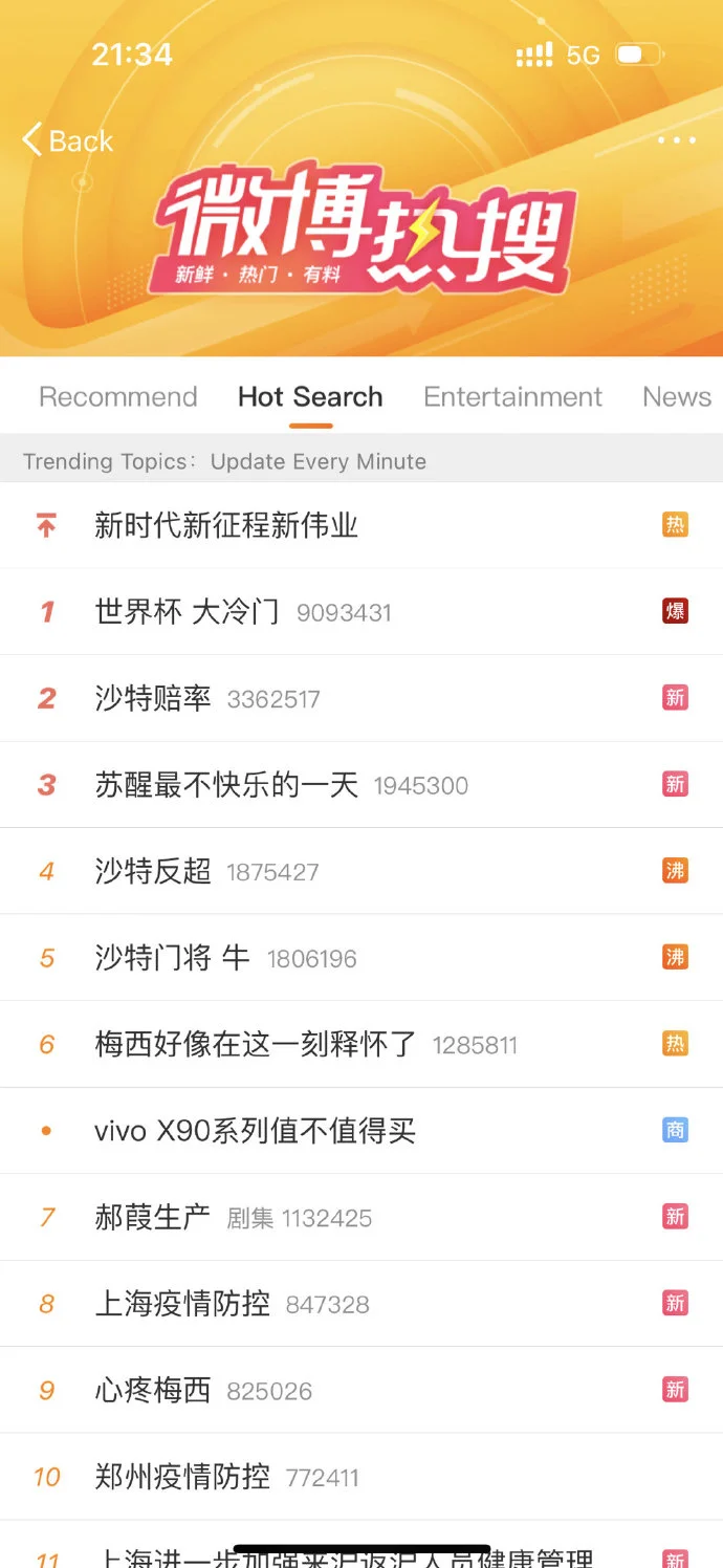阿根廷爆冷不敵沙特阿拉伯 甦醒曬照表情生無可戀 全文约108字, 阅读需要1分钟 今晚卡塔爾世界盃,沙特阿拉伯2比1擊敗阿根廷。照片中的甦醒一臉生無可戀,網友調侃“他眼裏已經沒有光了”。隨後,他在小號曬熱搜截圖,稱:“我唯一能幫助阿根廷的方式,在熱搜上擊敗沙特門將。 ” 今晚卡塔爾世界盃,沙特阿拉伯2比1擊敗阿根廷。梅西鐵桿球迷甦醒發文:“這是我在快樂再出發裏最不快樂的一天。”照片中的甦醒一臉生無可戀,網友調侃“他眼裏已經沒有光了”。隨後,他在小號曬熱搜截圖,稱:“我唯一能幫助阿根廷的方式,在熱搜上擊敗沙特門將(僅限於21:34)。 ” 相關人物