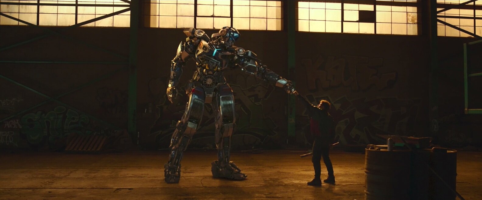 在影片中,男主諾亞因緣巧合之下坐進了幻影變形的超跑之中,卻忽然接收到擎天柱的召喚,於是跑車自動啓動,上演了一場驚心動魄的飆車追逐戰。剛逃離險境,驚魂未定的諾亞就再次見證驚人奇觀,先是幻影酷炫變形並自來熟地與他稱兄道弟;大腦宕機之時,擎天柱、大黃蜂和阿爾茜也集結出動,讓他大開眼界。諾亞與汽車人的初遇之震撼,讓人夢迴《變形金剛》中男主山姆第一次目睹汽車人集體變形的名場面,可謂情懷拉滿。從這次意外的相遇開始,他們的命運便緊緊聯繫在了一起,共同踏上了守護正義的熱血冒險之旅。