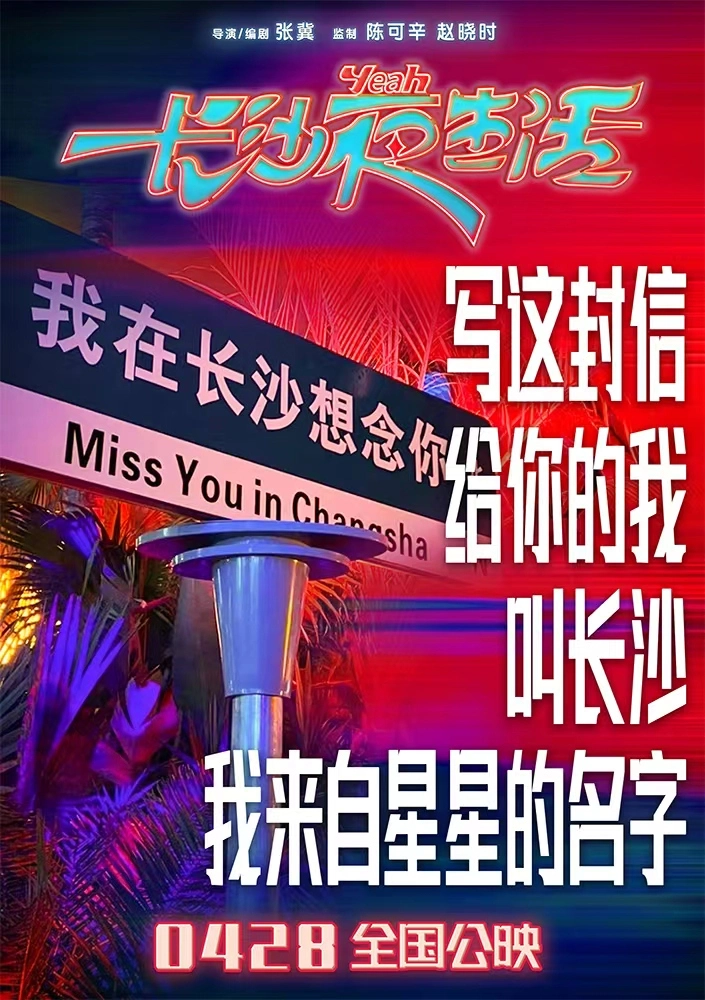 由陳可辛、趙曉時監製,張冀編劇並執導,尹昉、張婧儀、蘇巖、吳昊宸、白宇帆、周思羽、吳軍、羅鋼主演,張藝興特別出演,周冬雨、王櫟鑫友情出演的電影《長沙夜生活》今日釋出張遠、陸虎、王櫟鑫共同演唱的主題曲《寄信人長沙》MV。歌曲由陸虎作曲,知名作詞人唐恬作詞。三位演唱者都是從長沙的舞臺走入全國觀眾的視線,詞作者唐恬則是湖南人,四位均與長沙有著別樣的淵源。