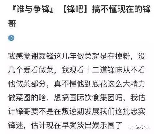 想當初謝霆鋒讓大家看到他的廚藝時,那是讓粉絲們驕傲到上天啊!“我家愛豆樣樣行,會唱歌,會演戲,還會做一手好菜。”然而,當他出現在任何一個場合都像個被廚藝蠱惑的炫廚達人時,很多人就像是甜食吃得多了感覺到了齁一樣,要說喜歡真有點難。